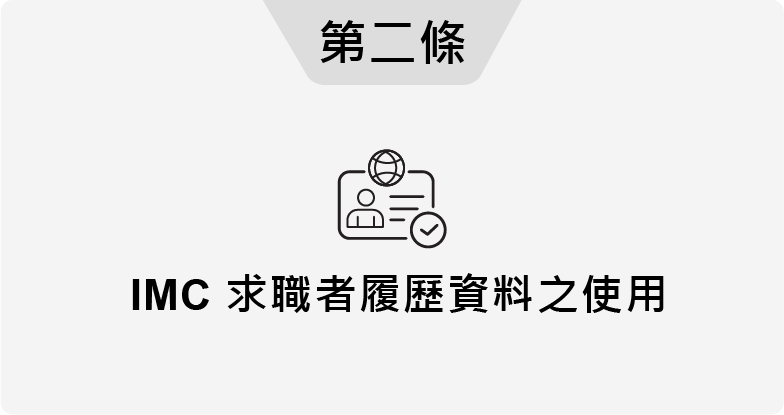 求職者並同意 IMC 基於求才媒合需求,可將上述資料提供給 IMC 之求才廠商。